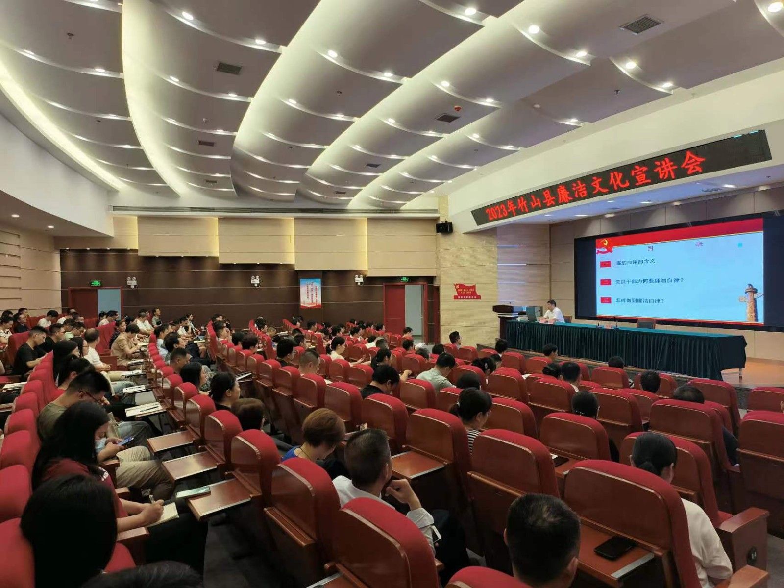 在竹山县新时代文明实践中心会场,立博分党委书记、教授计毅波以《争做新时代廉洁自律的表率——谈党员干部的廉洁自律》为题,形象生动地阐释了新时代廉洁文化的丰富内涵、推进廉洁文化建设的方法路径。
